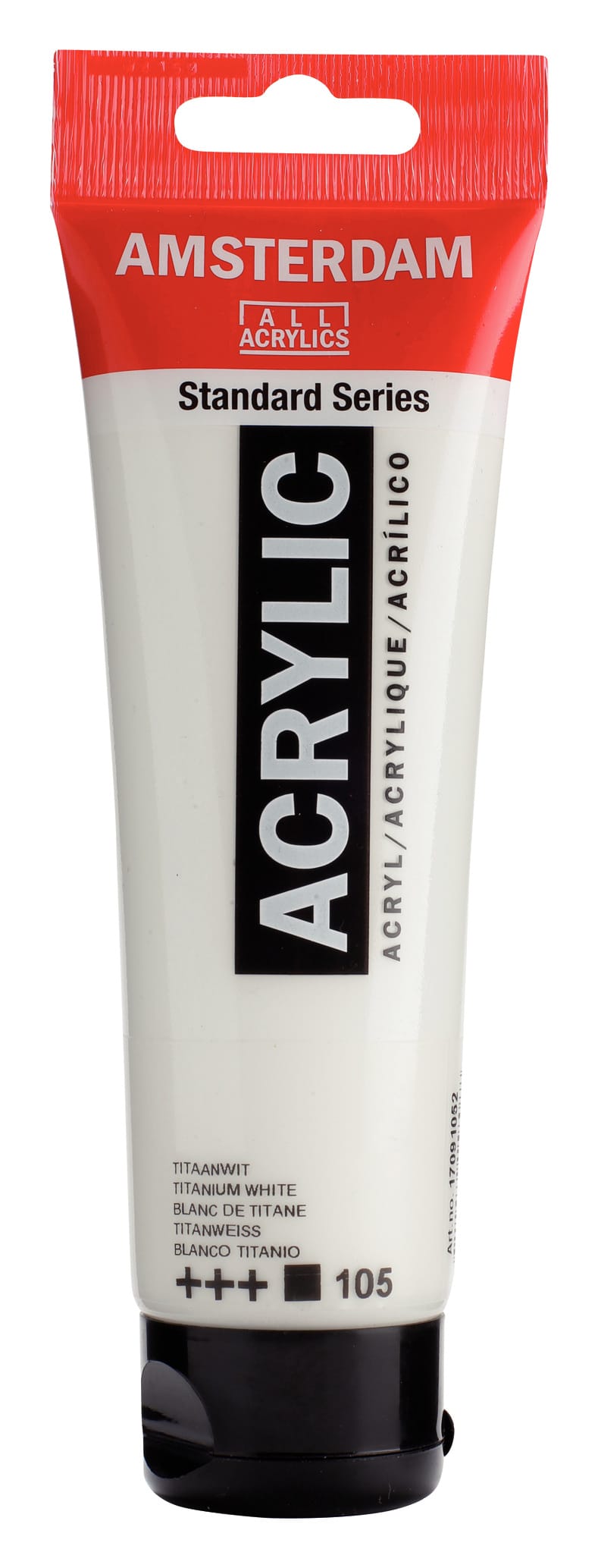 Yüksek örtücülüğe sahip **titanyum beyazı** tonu sunan, profesyonel kalitede akrilik boyadır. Bu **Amsterdam Titanium White 105**, tamamen opak (opaque) yapısı ve mükemmel ışık dayanımıyla temel beyaz renk, vurgular, alt katmanlar ve renk açma işlemleri için vazgeçilmezdir.