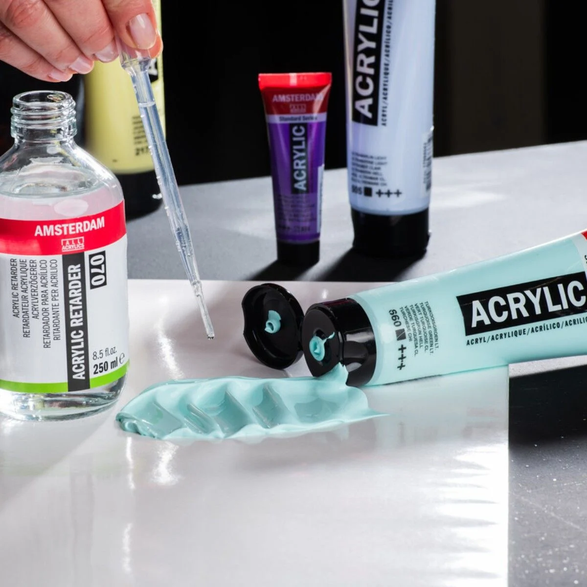 Boyayı doğrudan tüpten veya biraz suyla ya da akrilik medyumlarımızdan biriyle inceltilmiş olarak kullanabilirsiniz.