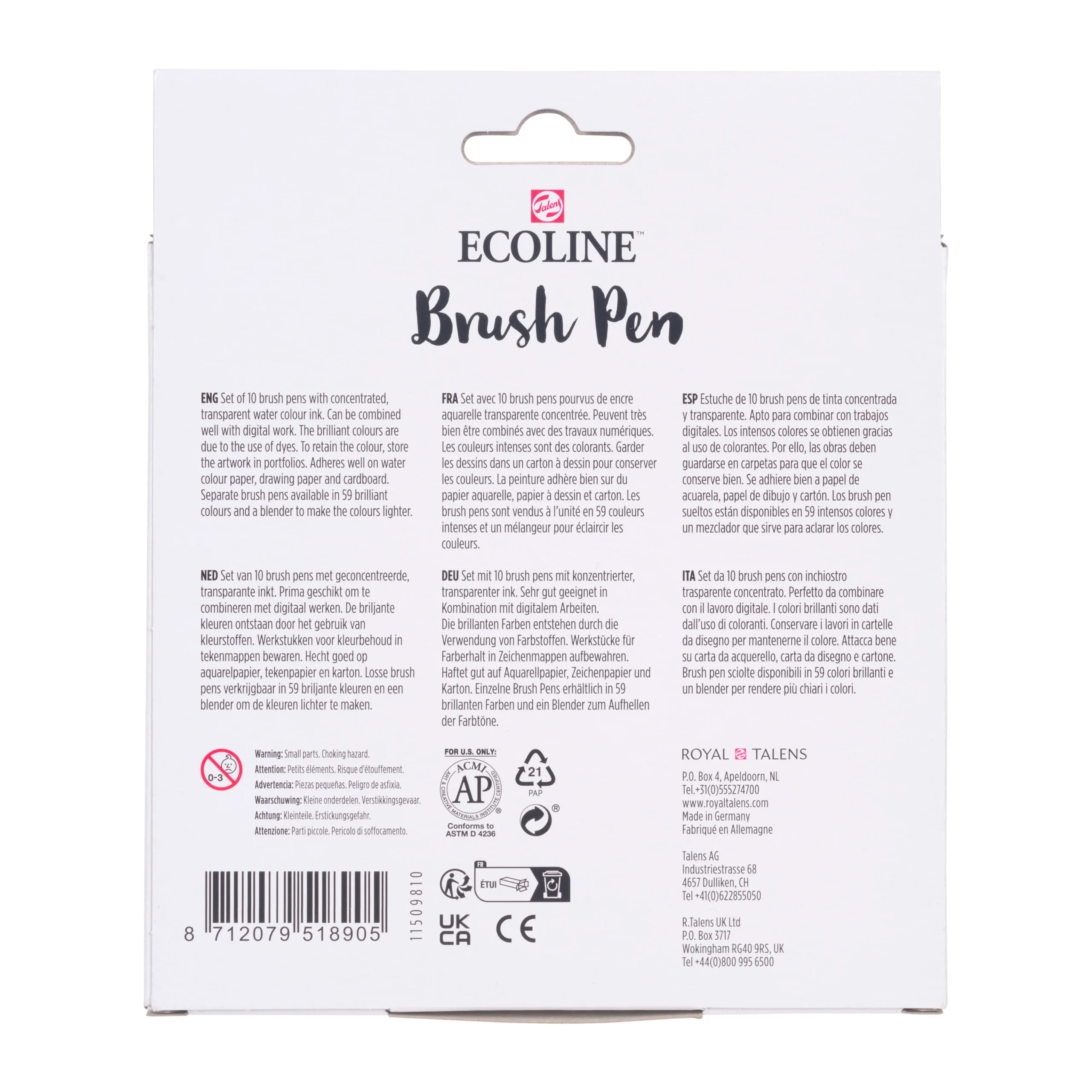 Bu set, çeşitli canlı tonlarda 10 adet Ecoline Fırça Uçlu Kalem içerir. Fırça Uçlu Kalem, saf, boya bazlı formülü sayesinde esnek ucu ve geniş yelpazedeki parlak renkleriyle öne çıkar. Şeffaf renkler, beyaz veya çok açık renkli kağıtlarda kullanıldığında en iyi sonuçları verir. Dilerseniz, suyla incelterek veya Fırça Uçlu Kalem karıştırıcısını kullanarak renk yoğunluğunu kolayca azaltabilirsiniz. Bu kalemler, el yazısı, suluboya çizimleri, hızlı eskizler ve son rötuşlar için mükemmeldir.